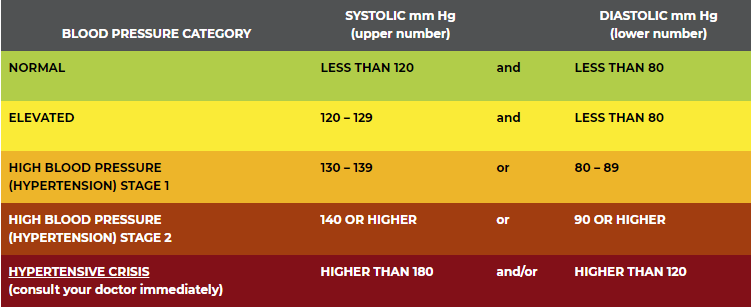 The stages of high blood pressure begin when the systolic blood pressure is 130 or higher, or the diastolic blood pressure is 80 or higher.