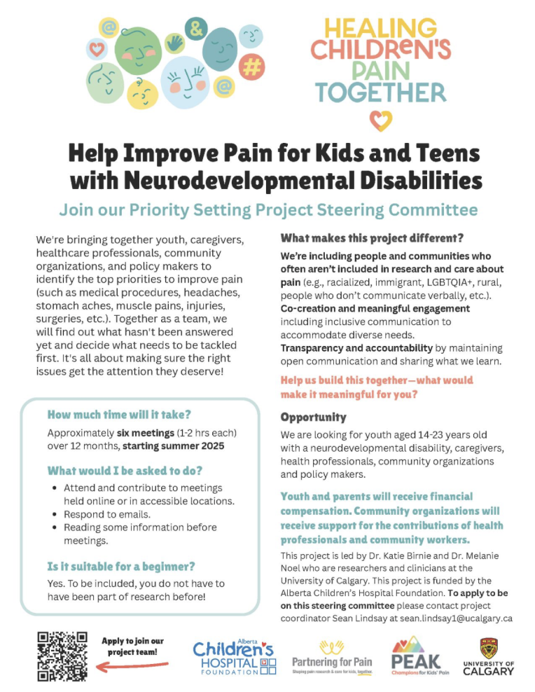 | | Join the steering committee of the Healing Children's Pain Together Priority Setting Partnership (PSP) focused on neurodevelopmental disabilities ๐ | |