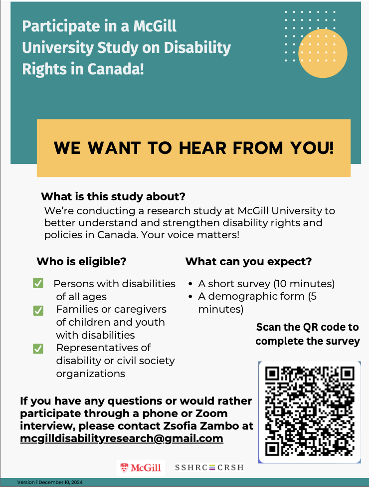 Focus Group Study on Rare Disease Clinical Trials ๐ | | A group of researchers at the University of Ottawa are conducting a focus group study to understand the experiences of children/youth with rare diseases and their caregivers concerning clinical trials [Clinical trials are research studies that evaluate treatments to assess whether these treatments work and are safe]. | | | Participate: Disability Rights Study in Canada ๐ | | Join: Advisory Council ๐ | |