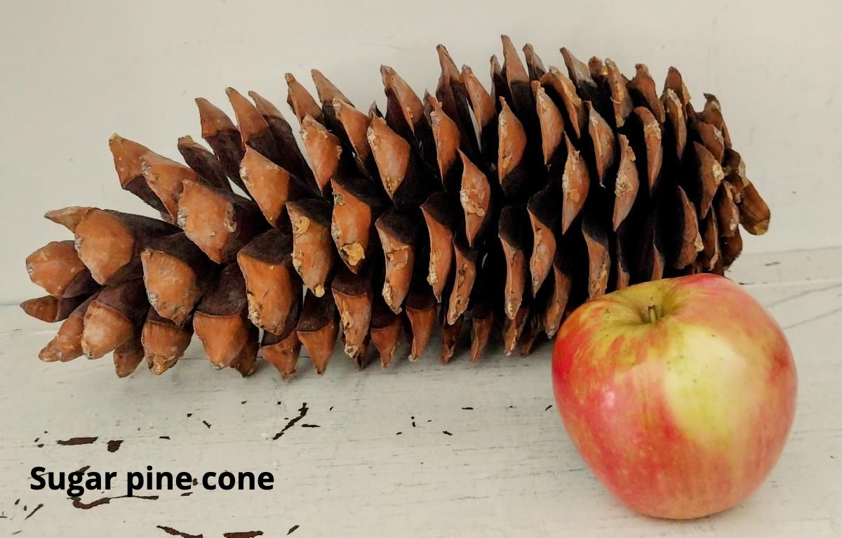 Over the holidays, a friend brought me the most unusual hostess gift: a pine cone. Not just any pine cone mind you, but one from a Sugar Pine, Pinus lambertiana. Native to the Pacific coast, the sugar pine is the tallest of all conifers, reaching record heights of 273 feet, and it bears the largest cones of any conifer—some growing up to 24 inches long. Sitting on my kitchen table, it looked like something left behind from the Jurassic period (that is a large apple). I was astonished and, being as botanically obsessive as I am, down the rabbit hole I went.