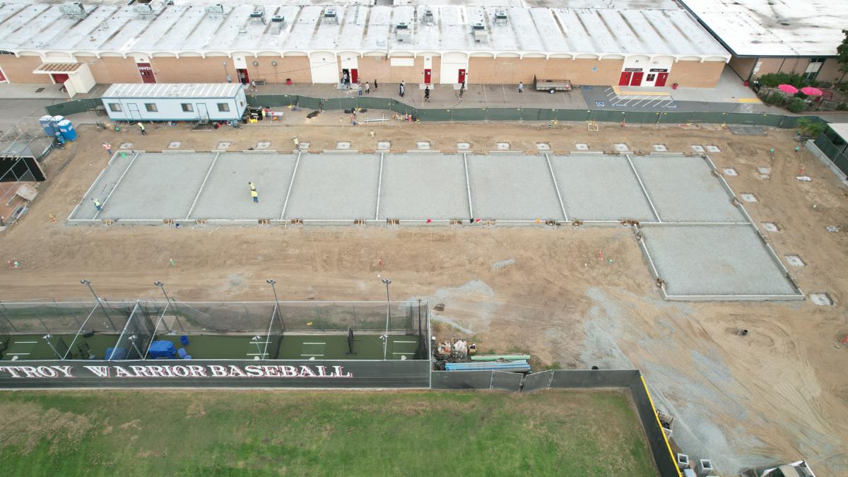 The new Troy High School classroom building project continues to progress. The underground utility lines below the slab have been placed and the building footings have been completed. Teams have installed the rock and moisture barrier components and are preparing to pour the slab during the winter break. Currently, the construction team is preparing to install a main fire water line and will then move into the framing portion of the new 8-classroom building.