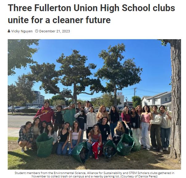 The FUHS Environmental Science Club, Alliance for Sustainability Club and STEM Scholars Club are united in a mission to diminish the volume of trash reaching the ocean. Click the image to read an article that was puplished by OCDE Newsroom! Thank you to our clubs for helping to make our oceans cleaner. Way to go FUHS!