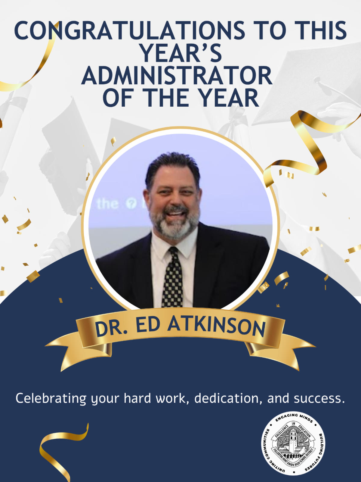 We are grateful to Dr. Atkinson for his many years of dedicated service to the District. His thoughtful leadership and steady presence have made a lasting difference. He will be missed.