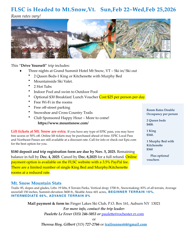The Finger Lakes Ski Club Scholarship Committee is proud to announce that
