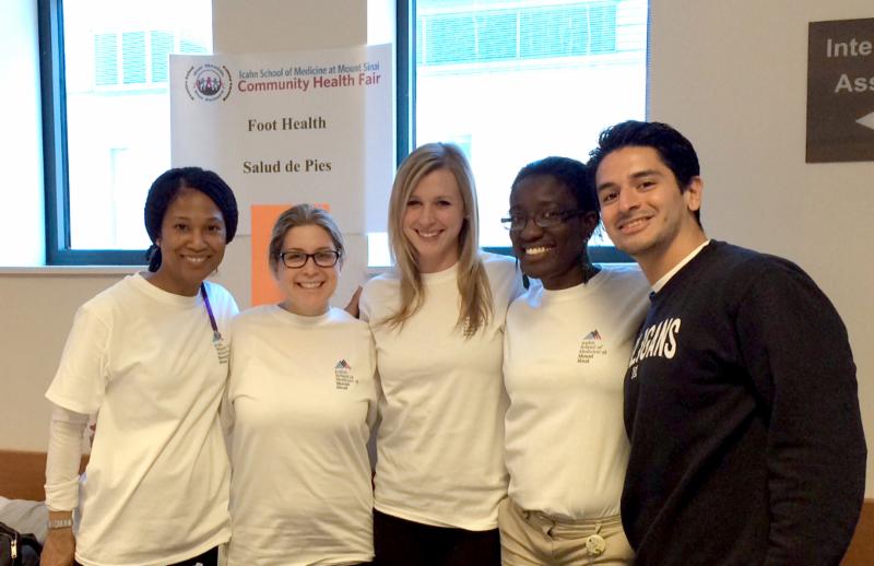 | NYCPM Students Volunteer at Community Health Fair, Train Medical Students Too At the Mount Sinai Community Health Fair were Naeemah Ruffin, Michelle Kaufman, Amanda Riley (all NYCPM, 2016) plus two (of three) Icahn School of Medicine at Mt. Sinai student volunteers, Eziwoma Alibo and Christian Pina. They are both first-year medical students. On Saturday, April 11, three third-year NYCPM students volunteered at the Mount Sinai Community Health Fair. This health fair provides about 20 different health screenings, including foot health, free of charge to the East Harlem community. Our three students, Michelle Kaufman, Amanda Riley and Naeemah Ruffin (all 2016) joined with three first-year medical ... Read more |