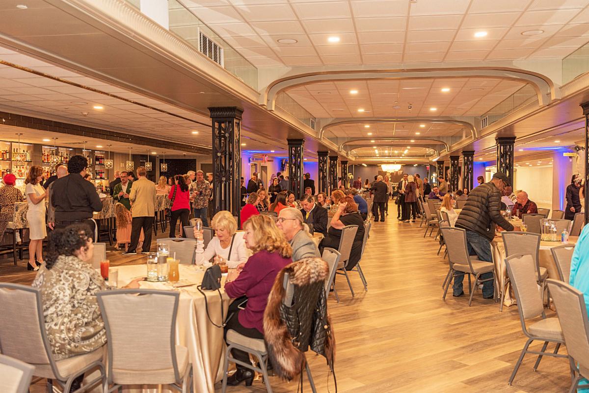 The Vessel is arranged with boarding off the bow deck or amidships port all decks. All enclosed decks have heads fully aft with men’s to port and women’s to starboard. Stair access between all decks is forward port and starboard and abaft of the elevators. The main deck is open with a scullery amidships port and the CO2 and emergency generator rooms fully aft along the centerline. The second deck is arranged with a unisex head for the band lounge and one for the VIP lounge port and starboard of the bandstand, beverage bar is amidships starboard, one scullery outboard of the bar, and a scullery across to port with a lounge and bar aft. The third deck is open with a beverage bar amidships starboard, two unisex heads and a private lounge aft. The fourth deck is arranged with open air space for passengers with a partial canopy (128’ x 22’) along with a raised wheelhouse.