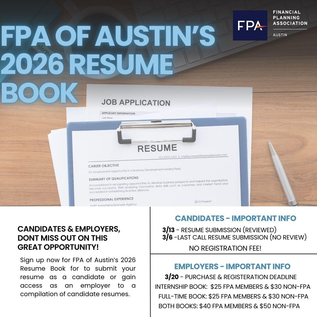 Take the first step and submit your resume to the FPA Austin Career Center. Be ready for that next opportunity!