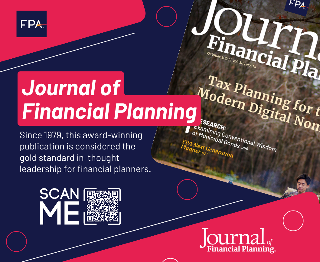 FPA Members can now access the latest issue of the Journal of Financial Planning to learn about helping clients plan for their second act, multigenerational retention, compensation as a driver of motivation and culture, diversity in succession planning, goals-based insurance planning, supporting women’s wealth journeys, financial business planning, financial wellness, and much more.
