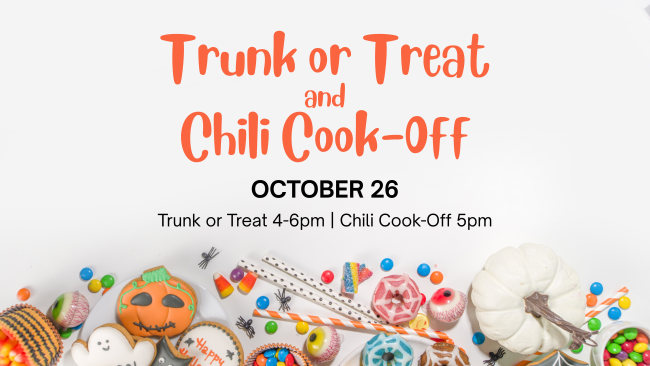 Sunday, October 26 - Trunk or Treat 4-6PM & Chili Cookoff 5-6PM