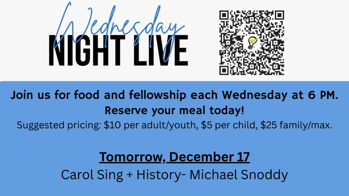 It's a great time to join the Christian Faith & Life Sunday School class! In January, we are starting The Message of the General Epistles in the History of Redemption: Wisdom from James, Peter, John, and Jude. We will also flavor our discussions with relevant videos from the Bible Project and Yale Divinity School. If lots of Bible reading and lots of discussion are your favorite ways to spend a Sunday morning, we are your class! Contact missy@kitchings.net for more information -- we would love to have you!