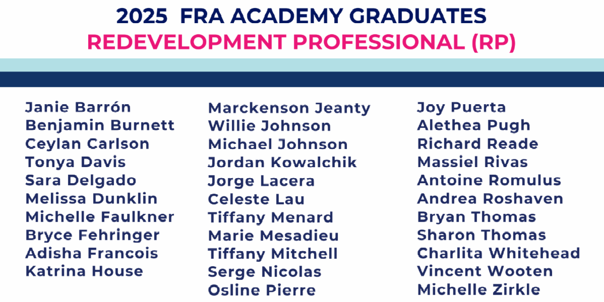 | | | | Thank you for supporting Florida redevelopment! Have questions or news to share? fra@flcities.com | | | | |