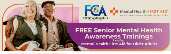 Family and Children's Association is offering FREE senior mental health awareness trainings. These trainings are geared towards individuals who interact with Nassau County older residents (age 55+) in ANY capacity- friends, family, clients, colleagues, etc. who are part of, connected to, or support older adults and their families. These trainings will cover the unique impacts of mental health and substance use challenges on older adults, as well as the risk factors and protective factors specific to older adults.