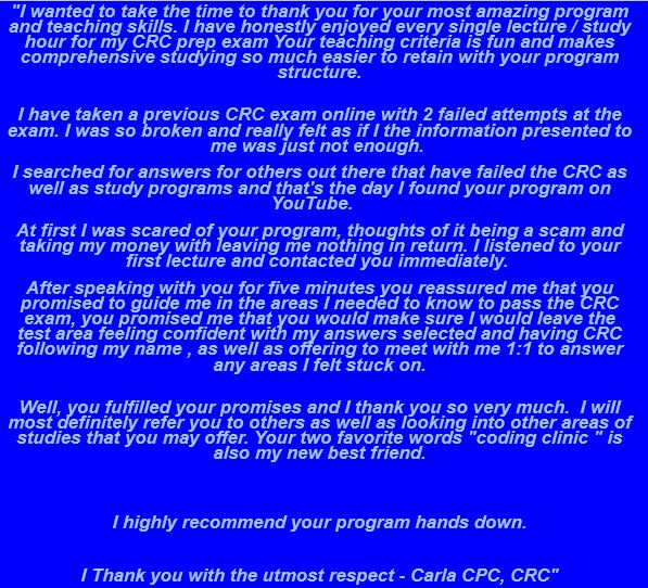 When the Exam and Study Guide are purchased through Compliant Coding Academy, our elite and unsurpassed training is