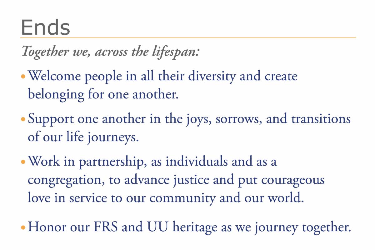 Lastly, we moved on to creating the ends which took up the balance of the retreat, part of the next board meeting and another special meeting with Laura Park to firm up our version that is now being shared with all of you.