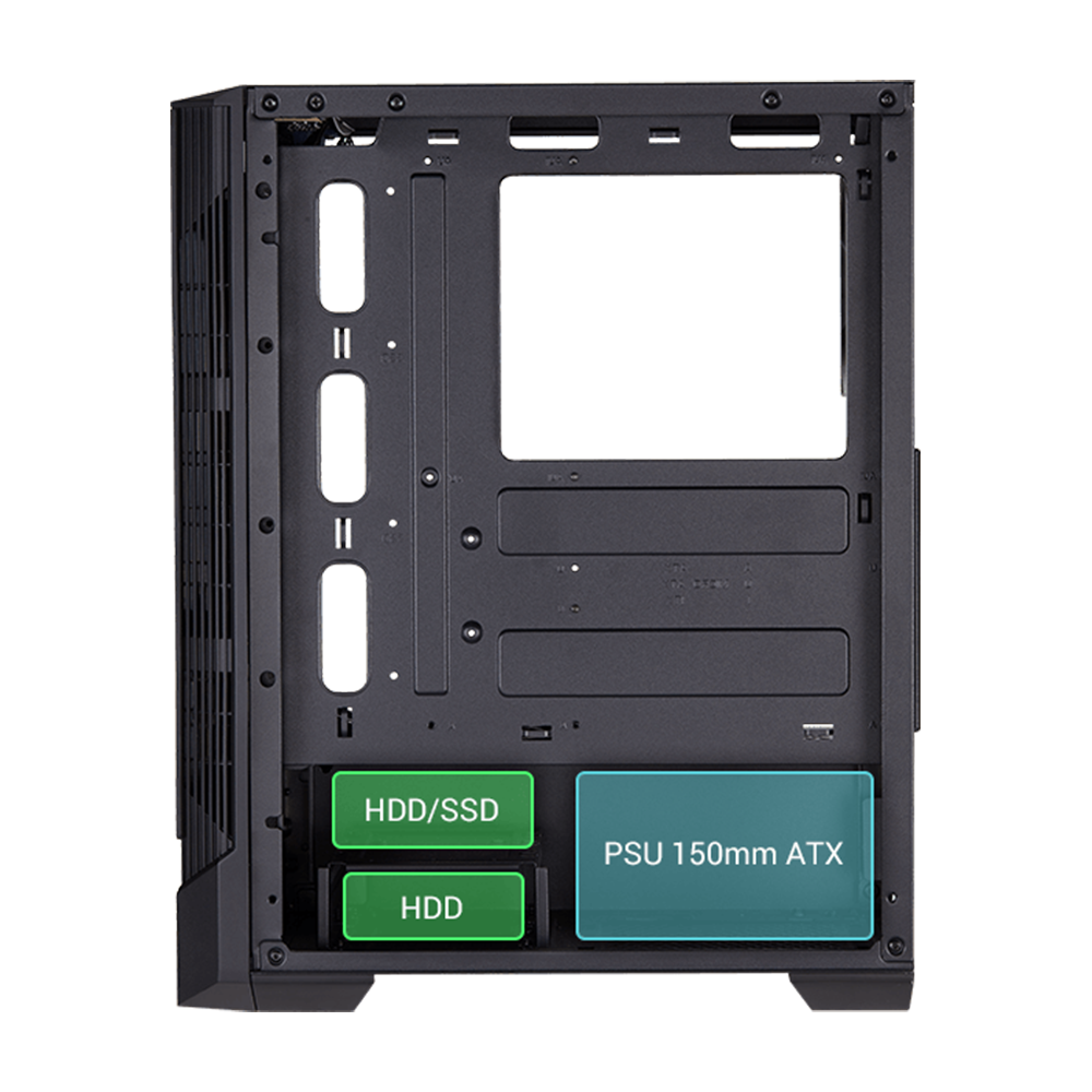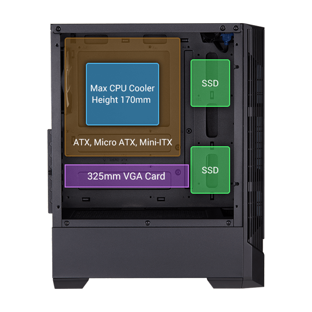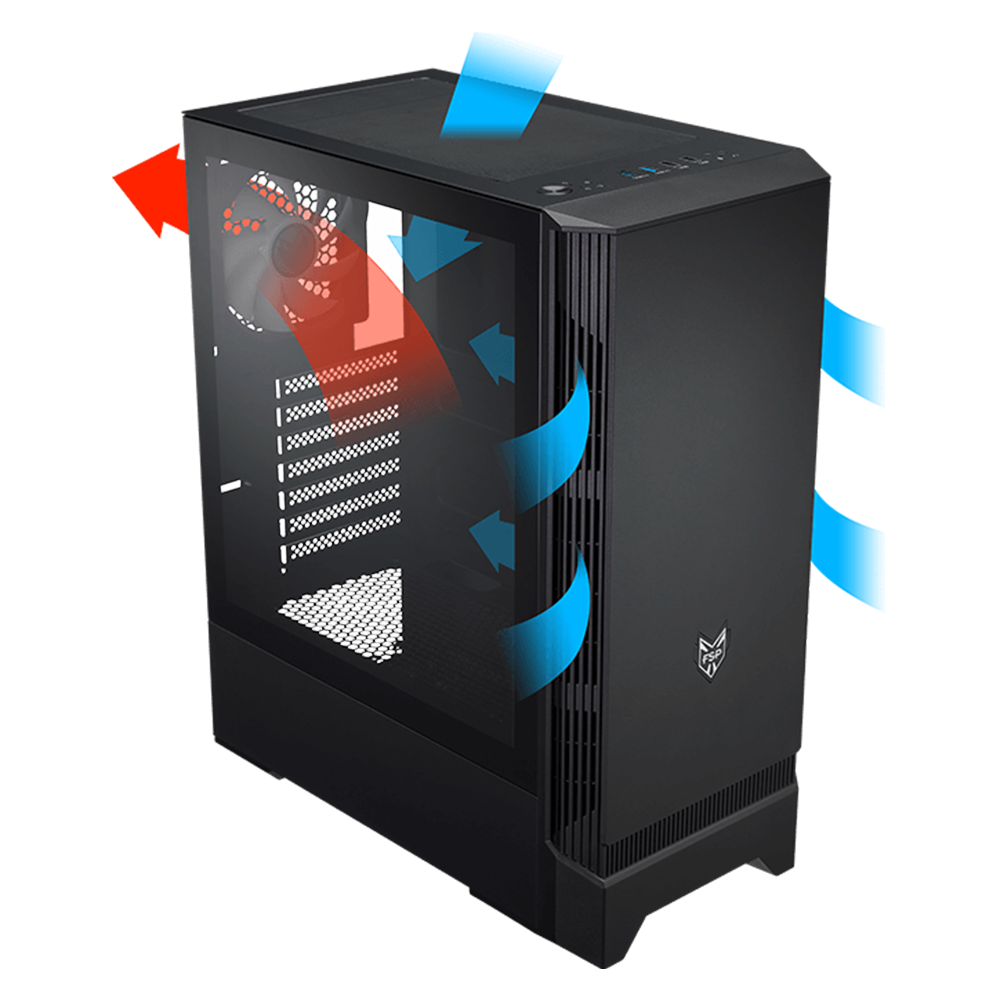 • Includes 1x 120 mm preinstalled rear fan (supports up to 6 fans total)