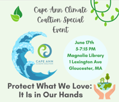Special Event from the Cape Ann Climate Coalition, Protect What We Love: It Is in Our Hands. Please join us on Tuesday, June 17th,