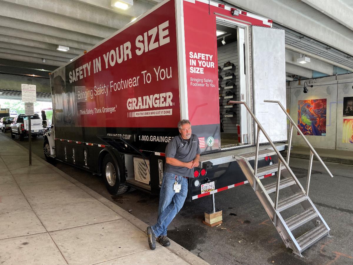 In late July, Jim Bolton, Assistant Director, Training and Occupational Safety (O&M/EHS) led an effort to bring a shoe mobile to campus to provide fittings to staff within Facilities and Operations (EVS and O&M), as well as Environmental Health and Safety (EHS) for protective footwear. The shoe mobile, provided by Grainger, was well-stocked and allowed most staff to walk away with their new shoes the same day. Jim attributes the success of the event to Melissa Morland, Executive Director, Facility Operations & Maintenance Administration (O&M) for her support of the on-site option and Michael Gaunt, Contract Manager (O&M) for setting up the procurement logistics for individual shops in AiM. Staff who were not on campus for the shoe mobile will still be able to purchase shoes online from Grainger.