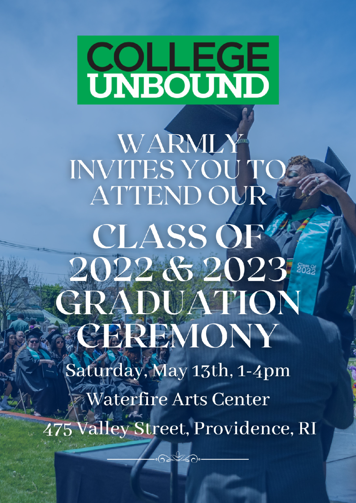 Be sure to RSVP for this year's graduation held on Saturday, May 13 at the Waterfire Arts Center.