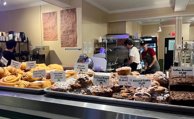 | | Of course, they have an impressive selection of baked goods that may be impossible to resist so why deprive yourself? My husband and I brought home an almond croissant and a cinnamon croissant which, not surprisingly, looked like a cross between a cinnamon bun and a croissant. It’s was divine and I regret not taking a photo of it before it was devoured but I guess you’ll just have to go there and see it for yourself. | |