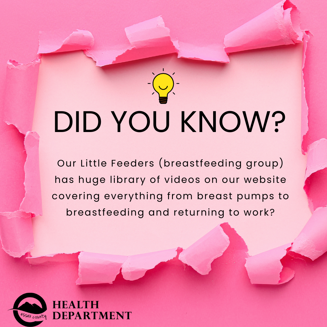 Certified Lactation Counselors (CLCs) are trained health professionals who provide essential support to breastfeeding parents. Working with the Essex County Health Department, our counselors offer a variety of services, including one-on-one counseling, education on proper latch and positioning, and assistance with common breastfeeding difficulties. They are committed to helping you and your baby have a positive breastfeeding journey and can connect you with other resources as part of your overall healthcare team. For all things breastfeeding, follow the link.