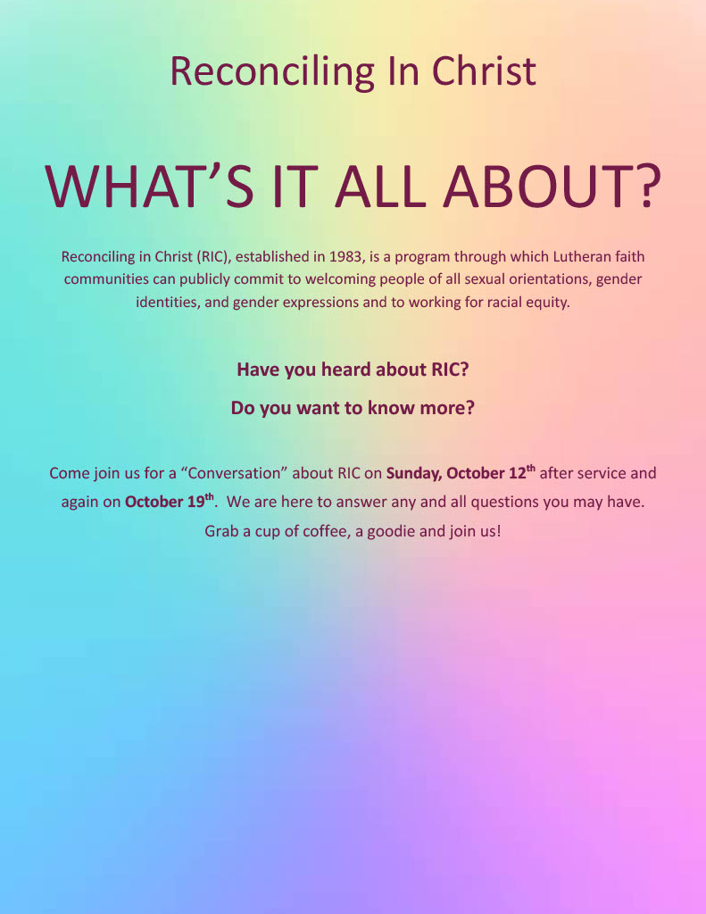 10:30 a.m. Congregational Conversation (Including "What is RIC") and Brunch