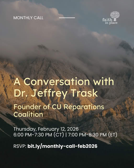 Join us for our February Monthly Call in conversation with Dr. Jeffrey Trask, Founder of Champaign-Urbana Reparations Coalition. Dr. Jeffrey Trask will talk to us about his work in leading the coalition that seeks reparations for African American people. Their goal is to address the historic and ongoing harms caused by systemic racism and discrimination.