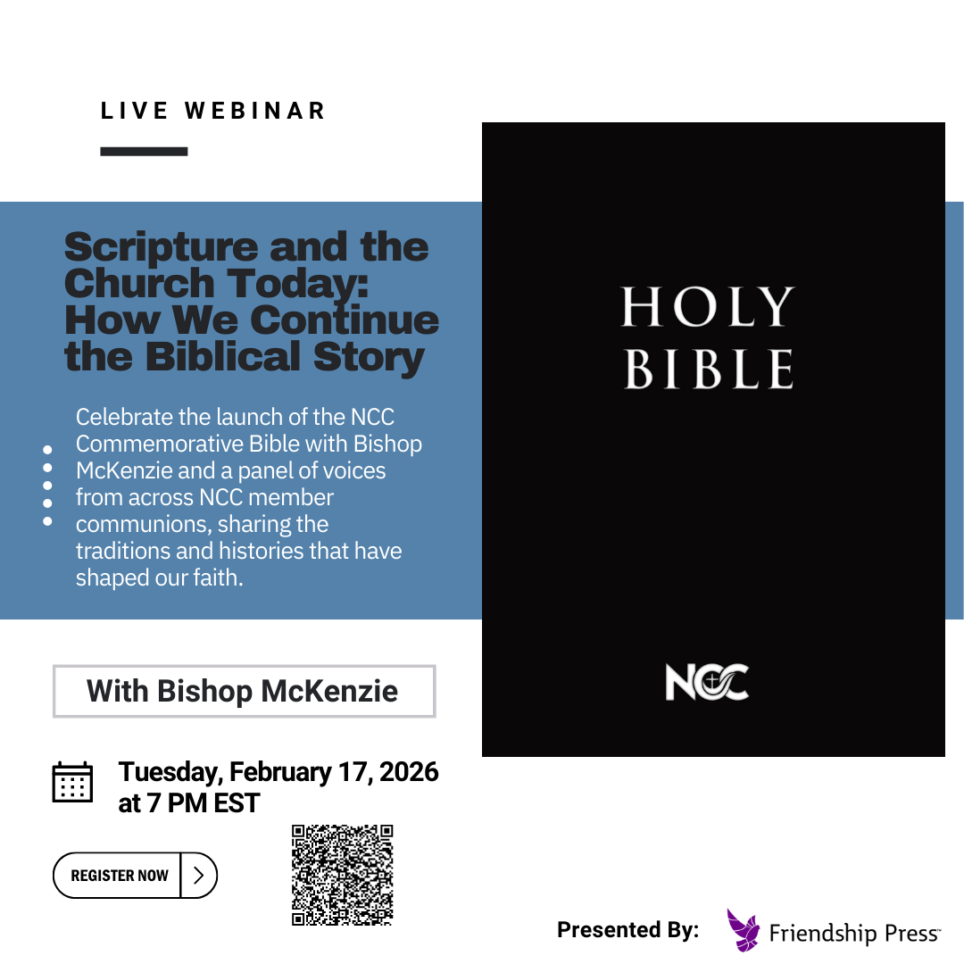 Celebrate the launch of the National Council of Churches' New Revised Standard Version Updated Edition Commemorative Bible with Bishop McKenzie and a panel of voices from across NCC member communions, sharing the traditions and histories that have shaped our faith.