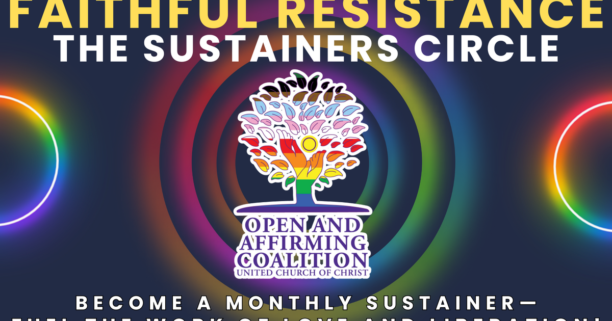 | Join the Circle. Fuel Faithful Resistance. | Your monthly gift helps the Open and Affirming Coalition equip churches to affirm, protect, and celebrate LGBTQ+ people in every community. In a moment when hatred and fear are rising, the Open and Affirming Coalition of the United Church of Christ stands firm as a beacon of faithful resistance. | | | |