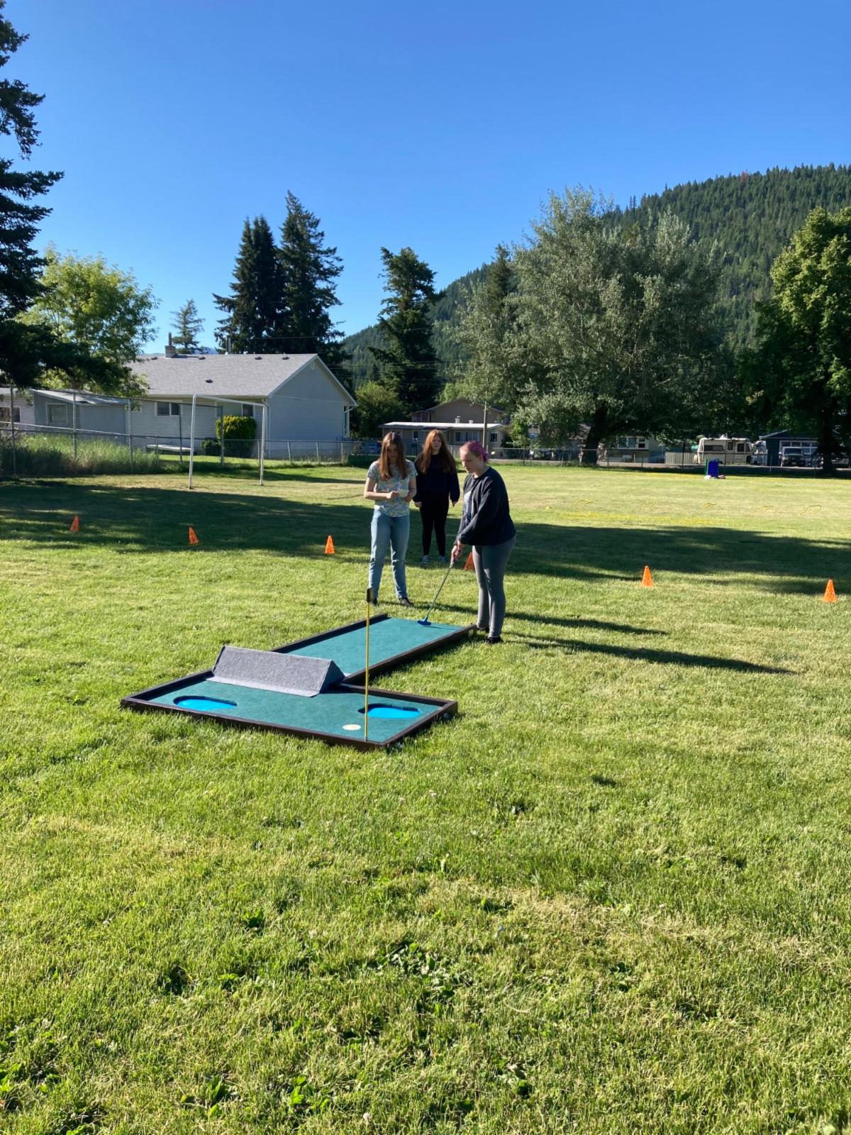 All students participated in a 9 hole mini-golf putting course on our field. Thanks Floppy Shots for the water bottles for all our students. Thanks also to PAC for the freezies; they helped to keep us cool on this very warm day. The school provided pizza for students.