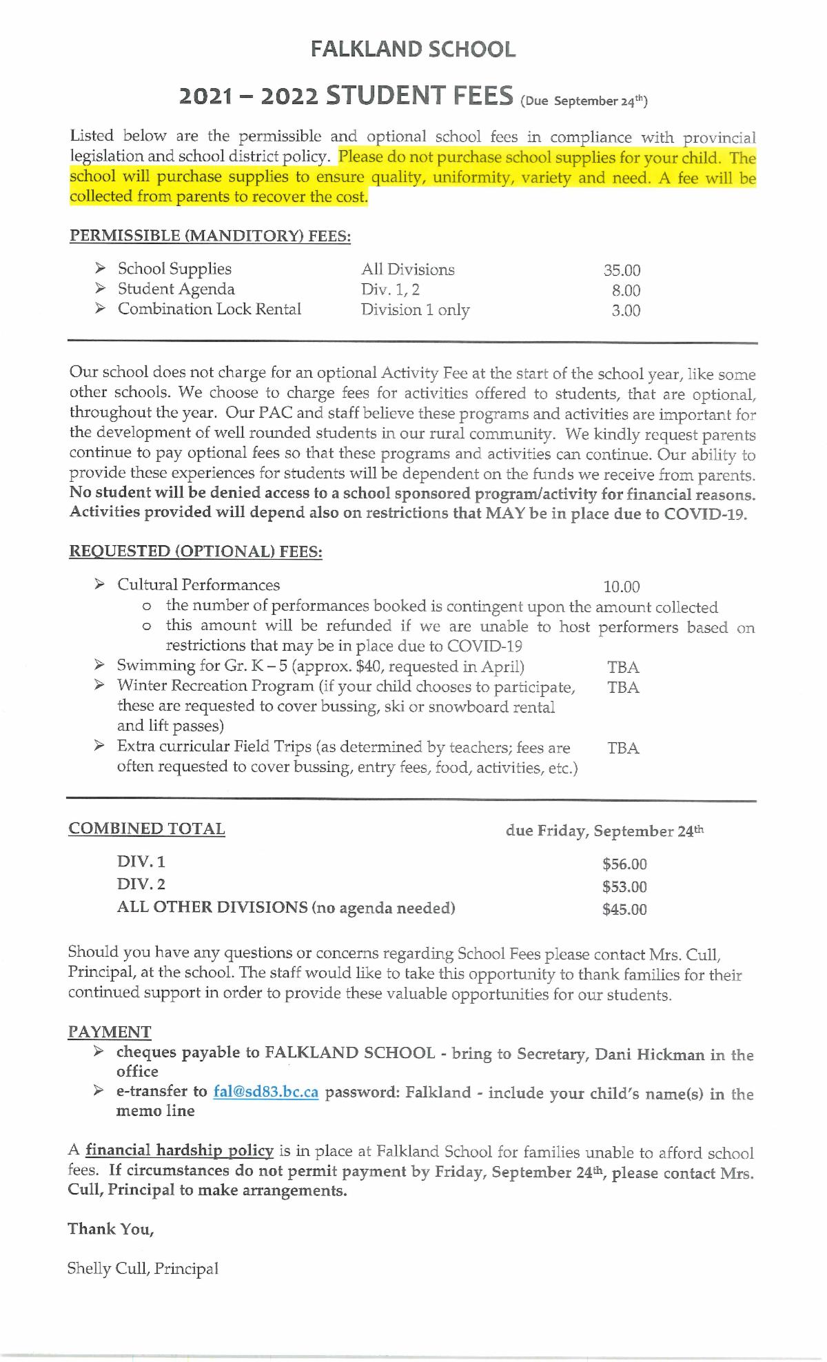 I would also like to wish any students moving away from Falkland the very best at their new school and in their new communities. Please keep in touch.