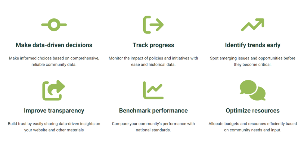We are excited to introduce one of our newest clients, Polco, a nationally recognized leader in public opinion polling. Polco specializes in gathering and reporting resident feedback, empowering local governments to make informed, data-driven decisions. Their team of experts design and conduct surveys and polls, gather valuable resident insights, and present the data through a user-friendly online dashboard. This innovative platform allows city leaders to easily analyze and segment the data, providing a clear understanding of their constituents' views. | Source: info.polco.us/platform/community-analytics | |