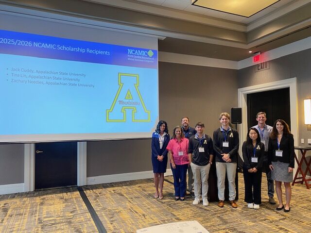 App State RMI students Zach Needles, Jack Cuddy, and Tina Lin were honored as scholarship recipients at the 2025 NCAMIC Annual Conference in September. The rigorous selection process highlighted the outstanding qualities and potential each of them brings to the field.