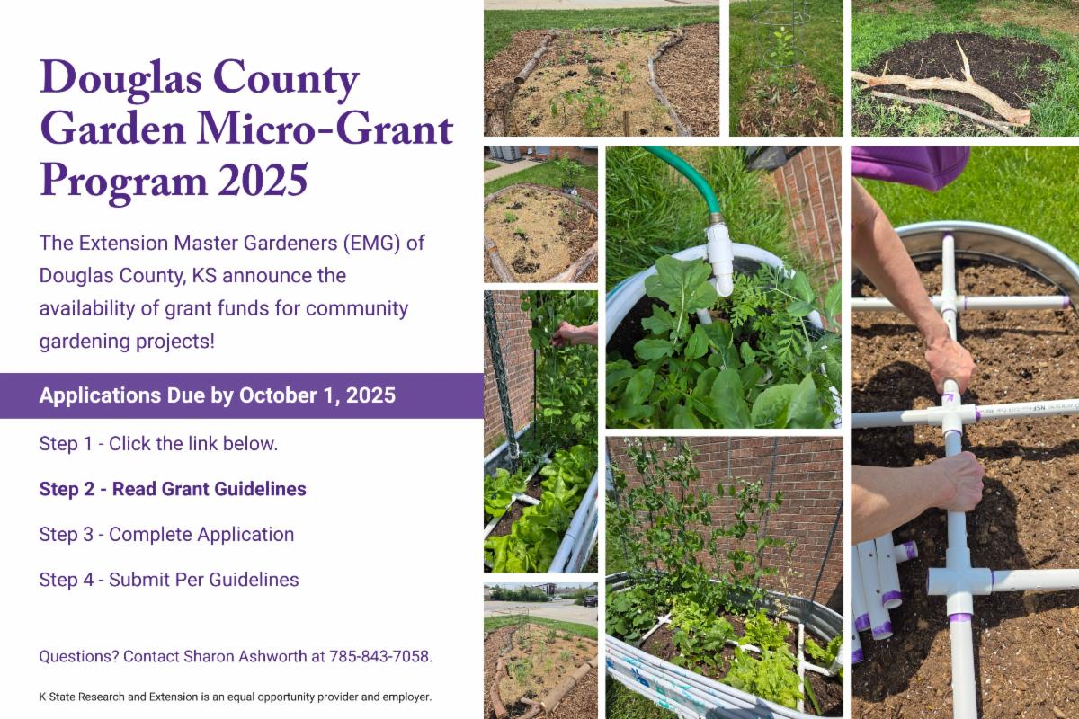 K-State Extension is committed to providing equal opportunity for participation in all programs, services, and activities. Program information may be available in languages other than English. Reasonable accommodations for persons with disabilities, including alternative means for communication (e.g., Braille, large print, audiotape, and American Sign Language) may be requested by contacting the event contact our main office or the event's program leader four weeks prior to the start of the event at 785-843-7058. Please see the full Douglas County staff list for detailed contact information. Requests received after programs' deadline dates will be honored when it is feasible to do so. Language access services, such as interpretation or translation of vital information will be provided free of charge to limited English proficient individuals upon request.