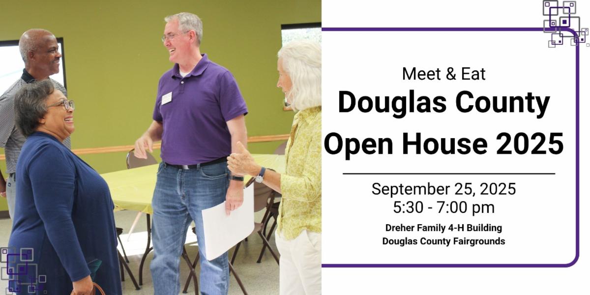 | Meet & Eat! Douglas County Extension Open House 2025 | Join us once again for a free dinner and priceless company on September 25, 2025, from 5:30 - 7:00 p.m. at the Dreher Family 4-H Building!