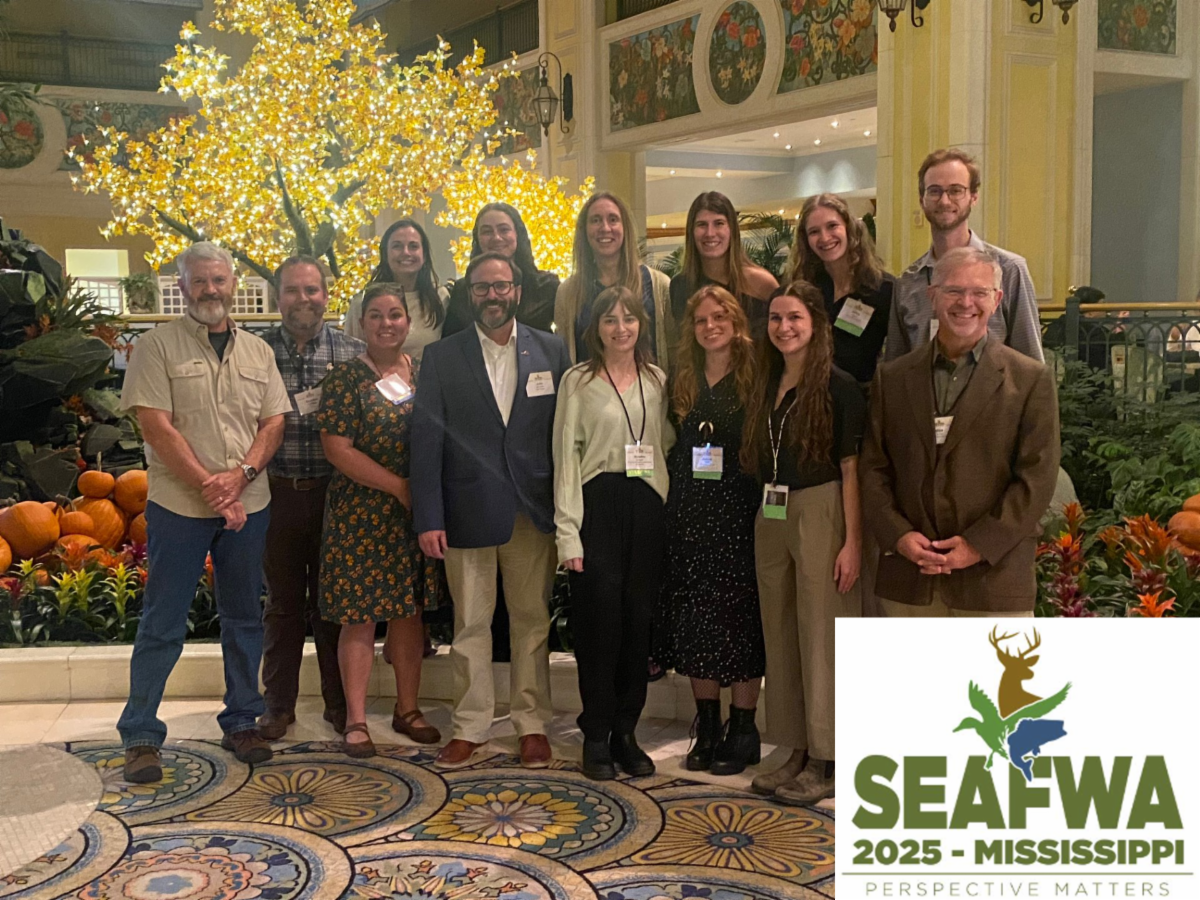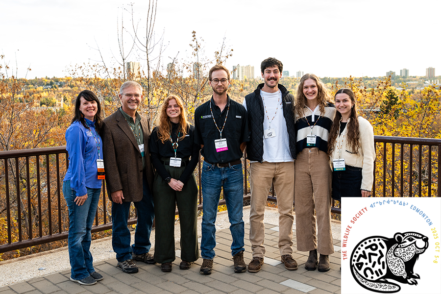 In October, members from our Wildlife Ecology Lab, including Dr. Mike Conner and graduate students Jordan Baron, Justine Smith, Lexie Dingerson, and Jenna Myers, attended the annual conference of The Wildlife Society (TWS) in Edmonton, Alberta. Jordan presented his work during the poster session, while the rest gave oral presentations. Additionally, Herpetology Research Associate Jen Howze delivered two oral presentations, and our Communications Specialist, Ben Thesing, attended to continue collaborations with TWS’s communications team and to build social media connections. Dr. Conner and Ben also sat down for a conversation with TWS’s Digital Content Manager, Katie Perkins, to chat about The Center and its research, which will be featured in an upcoming episode of TWS’s new podcast, Our Wild Lives.