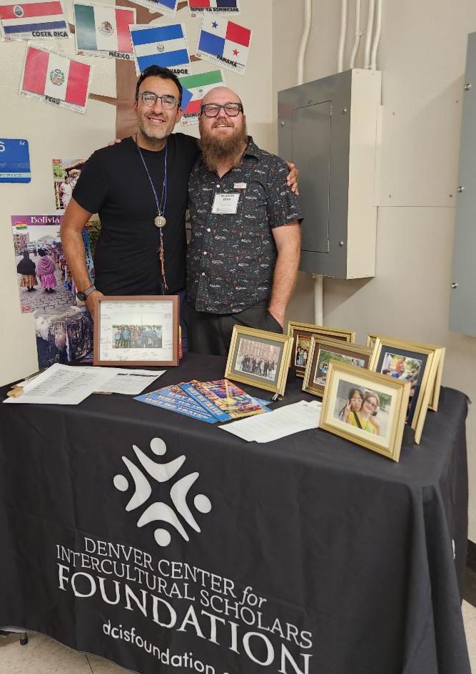 The DCIS Foundation attends meetings and events all across DPS to spread the news about our foundation and all we do to help get more students traveling. Are you part of DPS? Do you want to meet with us? CLICK HERE to fill out our contact form. |    | THE WORD IS SPREADING FAST! |    | Excitement is building around our efforts to expand student travel opportunities across DPS. Pictured here are Spanish teacher Diego Rodriguez from Morey Middle School and DCIS Foundation board member Brandon Bohn. We were pleased to attend Morey’s Back-to-School Night (with thanks to Principal Courtney Wickham) and contribute funds to support their group trip to Guatemala last summer.