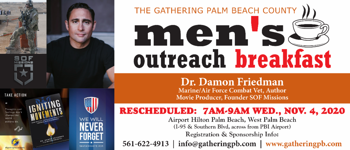 Our speaker is Dr. Damon Friedman, a decorated combat Veteran, Author, Movie Producer, and Pres. of SOF Missions. This event is live and-in-person, so reserve your seats. Great opportunity is upon us, let this be a resource to you!