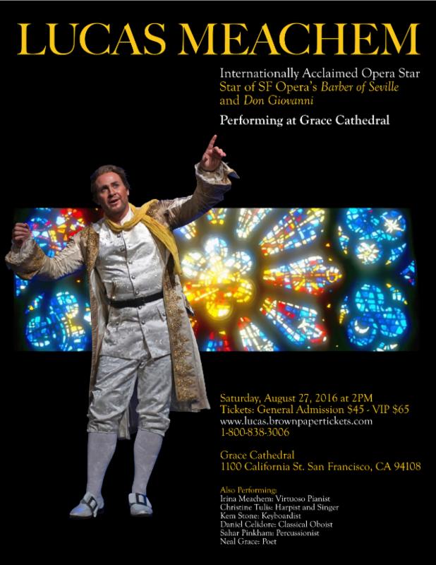 August 27 at Grace Cathedral: Lucas Meacham ~ Saturday afternoon 2 pm. I am able to offer you a 20% discount by using this code: