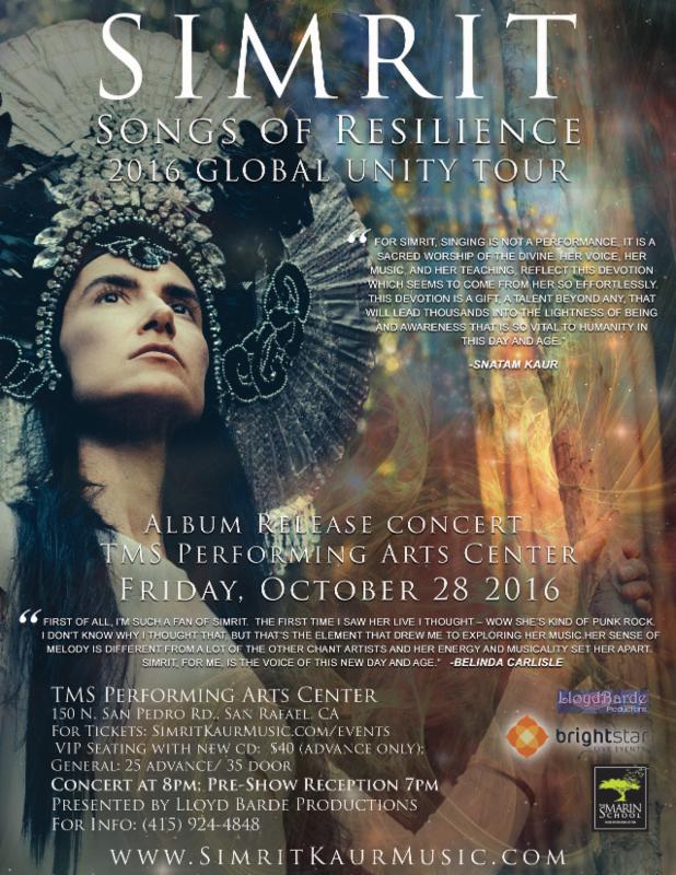 Simrit: 2016 Global Unity Tour comes to TMS Performing Arts Center! We are so very excited to host and produce this tour stop (and CD Release Concert) on her "Songs of Resilience" Global Unity tour.