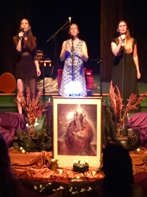 Here's a great picture fro the stage, with Deborah's beautiful altar fully on display along with the Copper Wimmin trio.