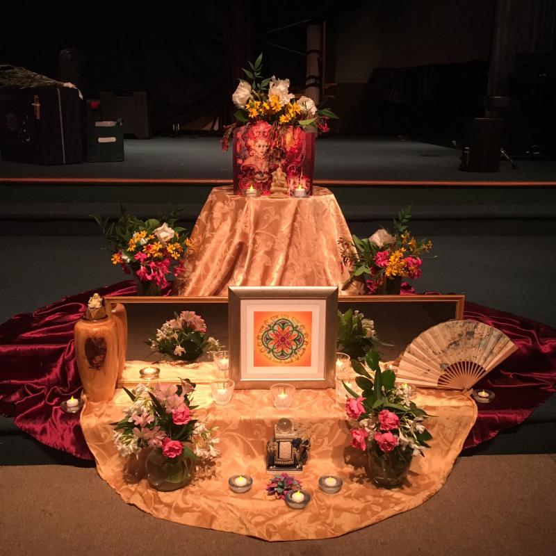 Here is one of Deborah's beautiful altars that embellish the stage at each and every one of our concerts & events ...
