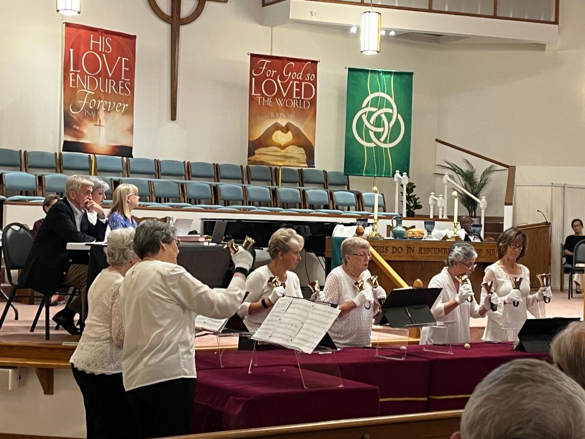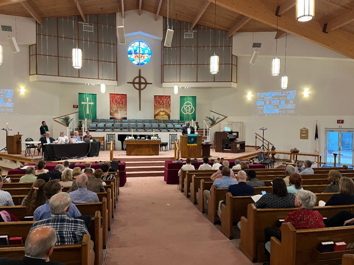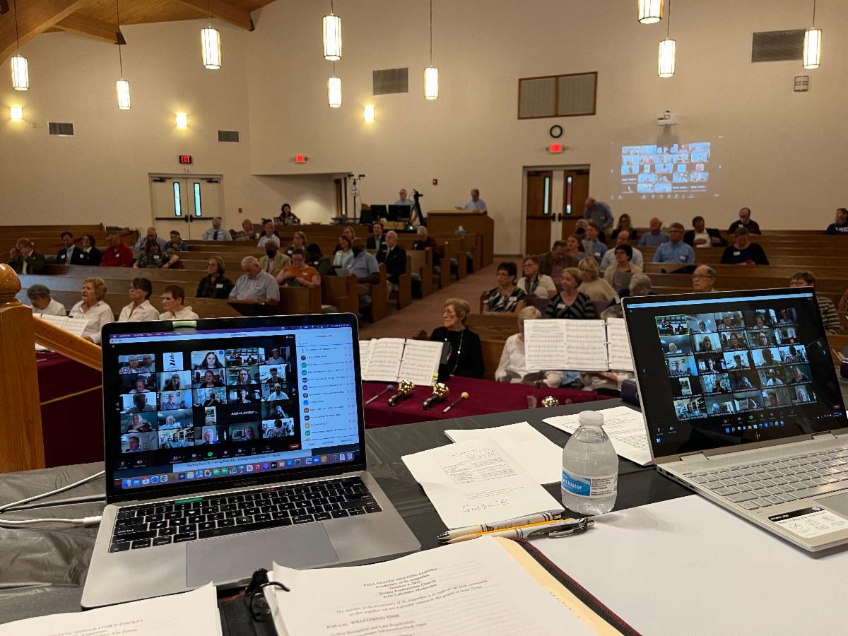 On a sunny fall day, the Presbytery of St. Augustine gathered at Trinity Presbyterian Church in person and by Zoom. Over 105 participants attended, including visitors, with about one third on Zoom. We thank Trinity and Pastor Jeff Beebe for their friendly hospitality, musical leadership, and technical proficiency in hosting our first "hybrid" meeting. In worship, we were especially blessed by Trinity's handbell choir (led by Lillian Warner) and Heasuk Che, Director of Music and Organist. We welcomed special guests from the Presbyterian Mission Agency (PMA), the Presbyterian Historical Society, and the Texas Presbyterian Foundation. Jeff Beebe and Vickie Bossuot officiated at the Lord’s Table.