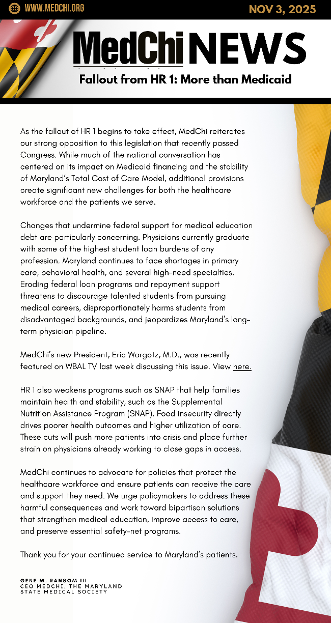 MedChi invites you to read the recent Baltimore Sun op-ed written by MedChi's 178th president, Dr. Eric Wargotz. Click here to read more.