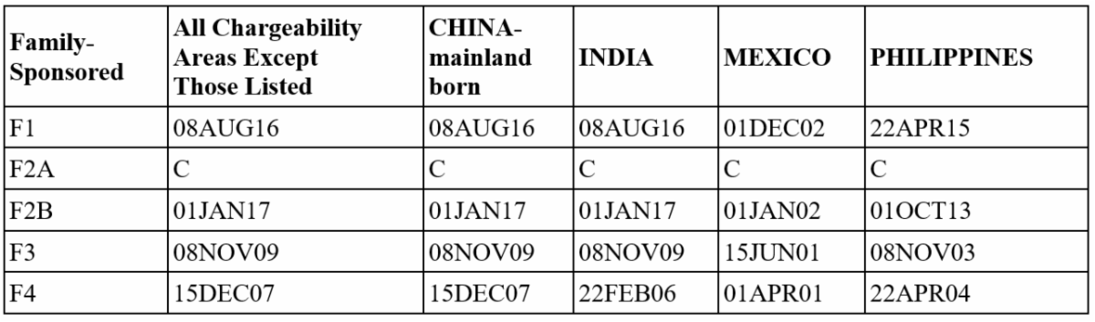 DATES FOR FILING FAMILY-SPONSORED VISA APPLICATIONS