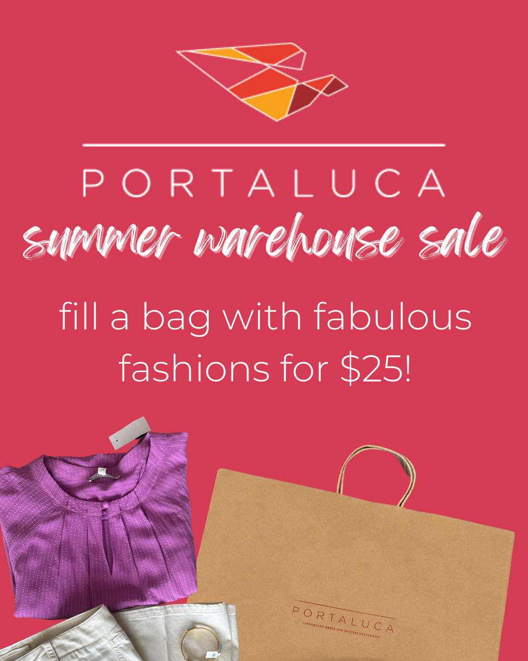 Please note that due to the upcoming Portaluca Warehouse Sale, in-person clothing donations are PAUSED until Tuesday, July 22nd.