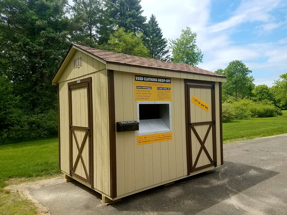 This shed is designed to give community members a uniquely clean, convenient, and well-cared-for option to donate their used clothing to. St. Pauly Textile Inc. partners with businesses and various organizations to distribute donated items both here in the U.S. and worldwide, where they’re ultimately re-worn by people who need them. OUR LADY OF FATIMA SHRINE receives funding for donated clothing and additionally has the option to use donations to serve community needs.
