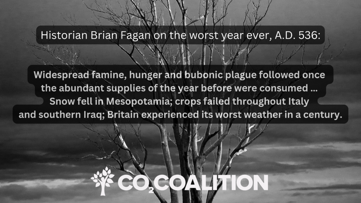 If you do an internet search for “worst year ever,” you will find that the overwhelming consensus is the year A.D. 536. The worst of the Dark Ages cold centered on that year and was probably associated with a giant volcanic eruption of unknown origin in the previous year.
