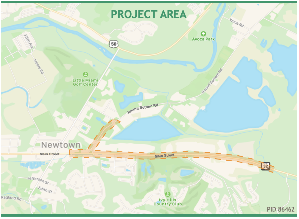 ODOT is now working with the Village of Newtown to complete project designs and identify funding sources. Construction is likely to be divided into phases which will allow work to begin as funding becomes available.