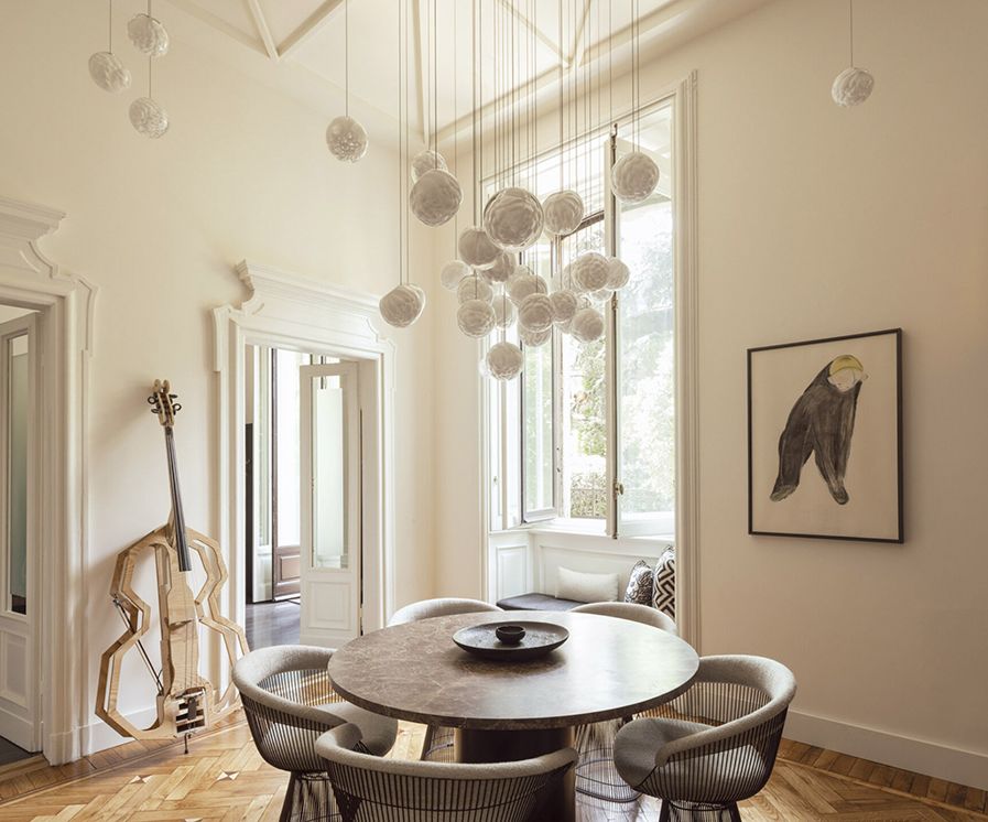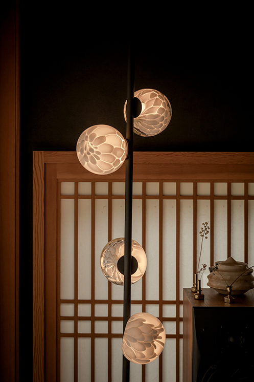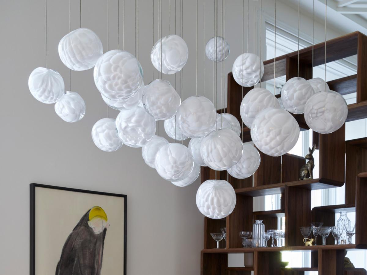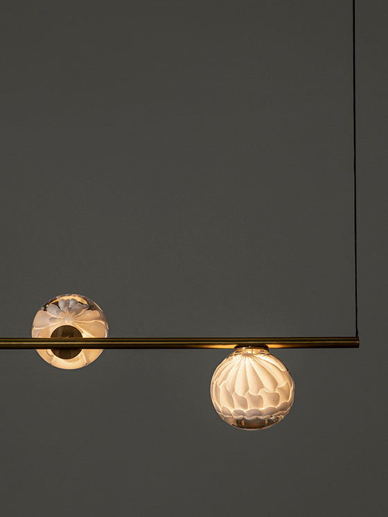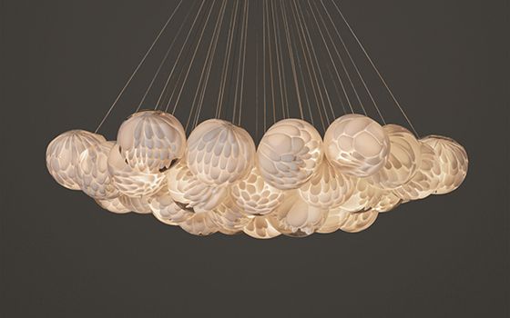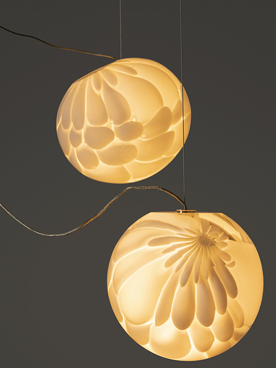 GLASS HAS A MEMORY - IT HOLDS ONTO THE SHAPES IT WAS EXPOSED TO WHILE STILL MOLTEN. THE BOCCI 118'S DOZENS OF TINY, FEATHER-LIKE FORMS IN HAND BLOWN OPAL GLASS ARISE FROM THIS UNCANNY ABILITY. WHEN LIT FROM WITHIN, THE INTERIOR COMPLEXITIES OF THE 118 COME INTO EVEN SHARPER DETAIL, RESULTING IN AN ETHEREAL, LIVING GLOW. |