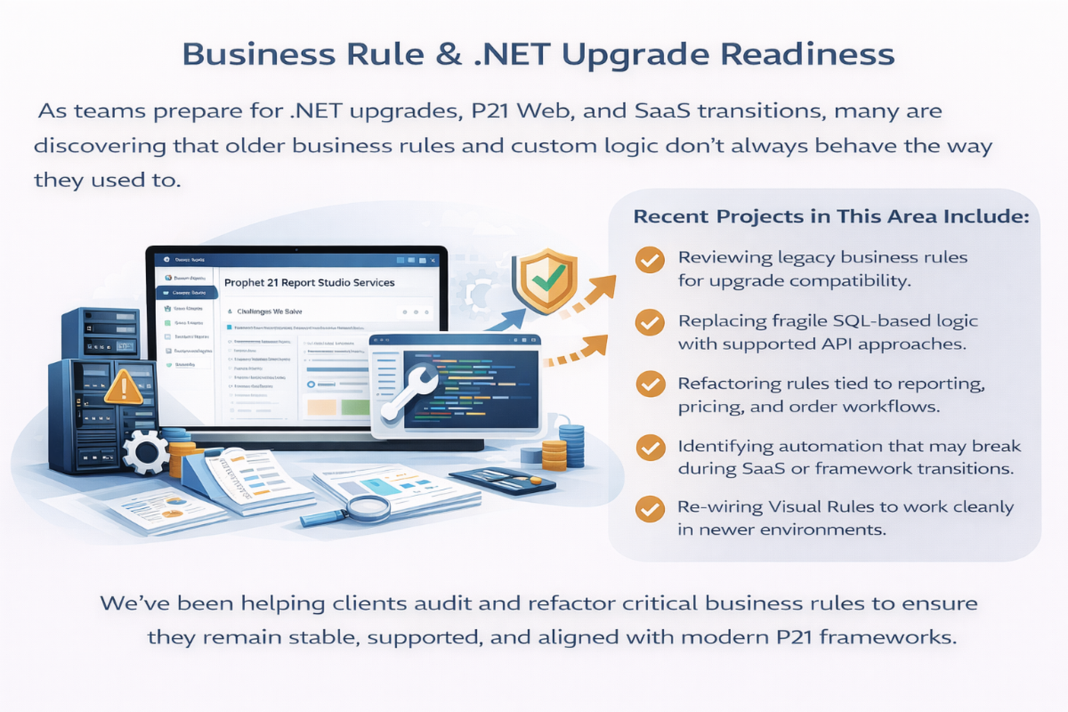 For many organizations, this type of rule audit becomes one of the most practical first steps in any P21 upgrade or SaaS planning effort.